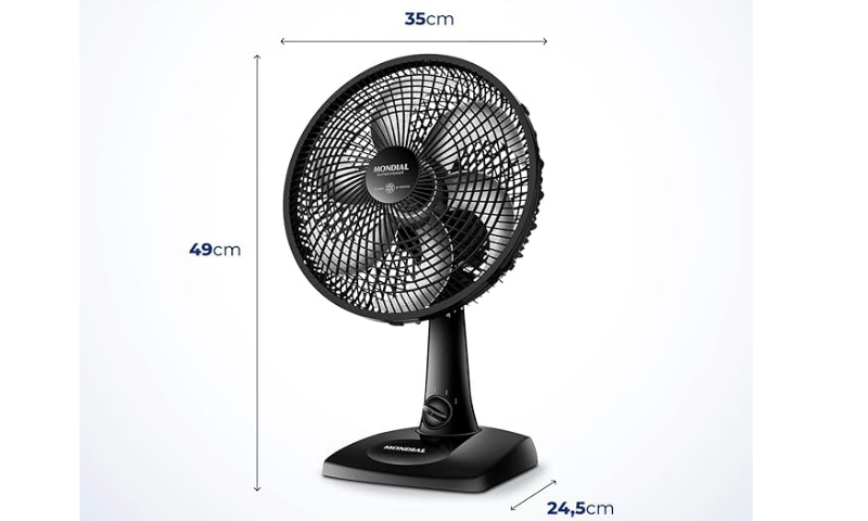 Contendo Alça para transporte e Porta-fio, a marca promete facilidade até mesmo para limpeza, tendo sua grade frontal removível, liberando melhor acesso as hélices.