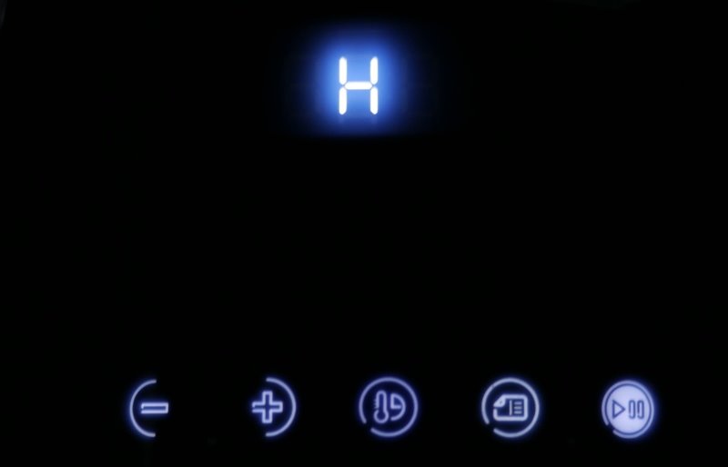 A terceira função é um aviso de quando a air fryer está quente quando não está em funcionamento. Caso a temperatura interna esteja acima de 70°C o painel irá demonstrar a letra H, para “High Temperature” (alta temperatura). Caso esteja abaixo disso, ela irá mostrar um “L” para “Low temperature” (baixa temperatura).