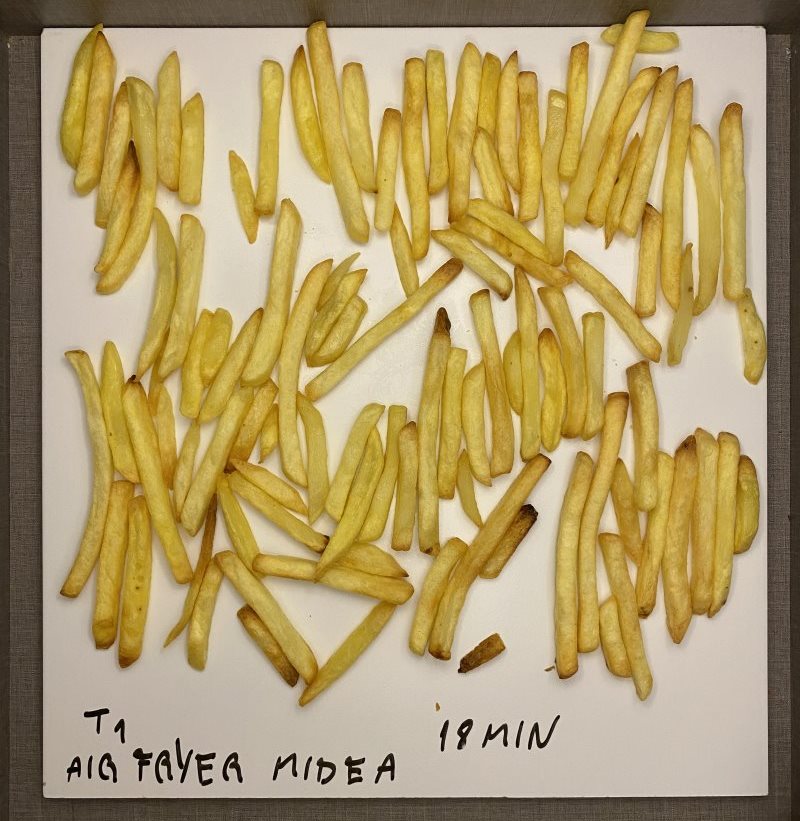 No geral a Midea GourmetFry se saiu bem preparando alimentos. Fritando 400g de batata frita o produto entregou as batatas prontas em 18 minutos. As batatas ficaram razoavelmente douradas com uma boa homogeneidade (assadas de forma uniforme. A crocância também ficou relativamente boa.