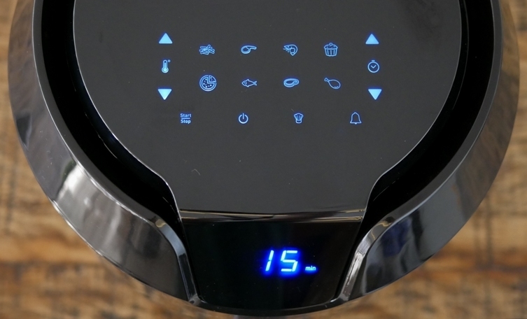 O painel é atraente, em azul com o display de tempo e temperatura em ângulo, permitindo enxergar as informações mesmo estando longe da fritadeira. É algo interessante quando comparado com a Oster digital que possui um painel com design mais atraente, mas não é fácil de ver a distância.