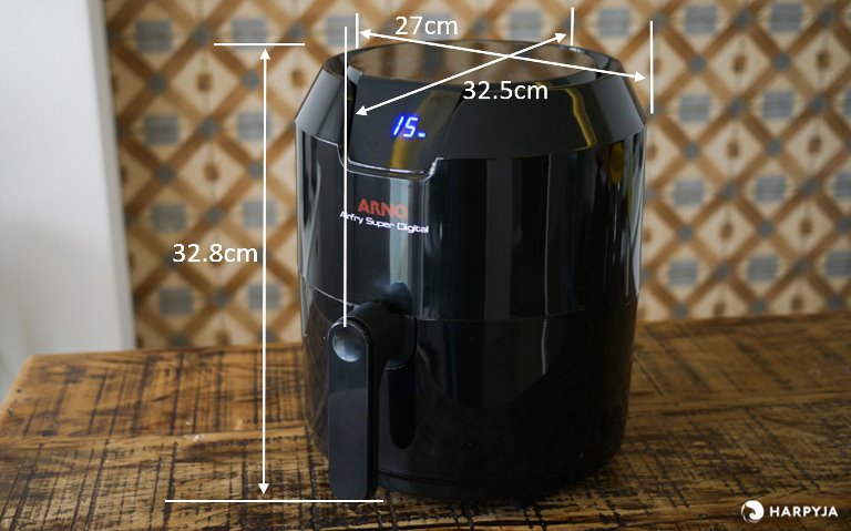 Esta air fryer Arno tem um painel digital interessante, com display visível a distância e aviso sonoro para lembrar de agitar os alimentos. Muitos pontos deixaram a desejar na performance, consumo e declaração de volume. Apesar de ter mais estabilidade esse sistema de cesto sem coletor, há muitos inconvenientes que vem junto e vale botar na balança se esse estilo é o que você busca.