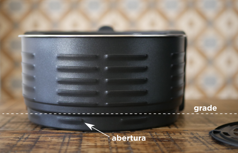 Se precisar deixar de molho as peças a grade necessitará de um prato fundo separado, pois há furos na lateral do cesto que não deixam submergir a grade dentro do cesto/coletor.