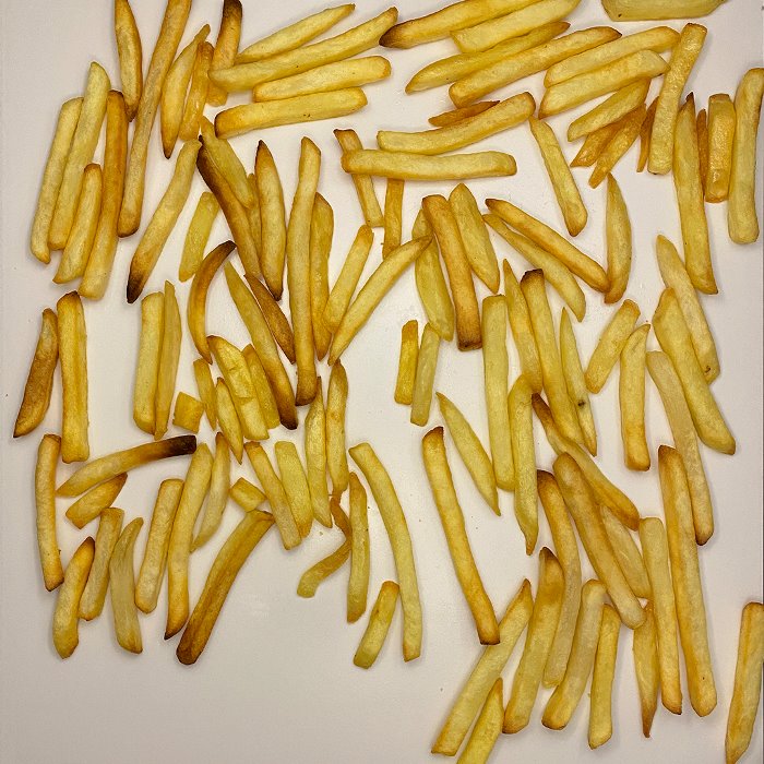 Praticamente não teve batata empilhada e com isso a Britânia BFR51 entregou as batatas prontas em torno de 18 minutos. A homogeneidade e a cor ficaram razoáveis, mas a crocância deixou a desejar.