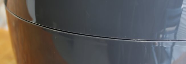 O acabamento no encaixe entre o cesto e o coletor poderia ser melhor. É a área que ficou mais feinha em toda a unidade. A área no topo do coletor também não é das mais atraentes.