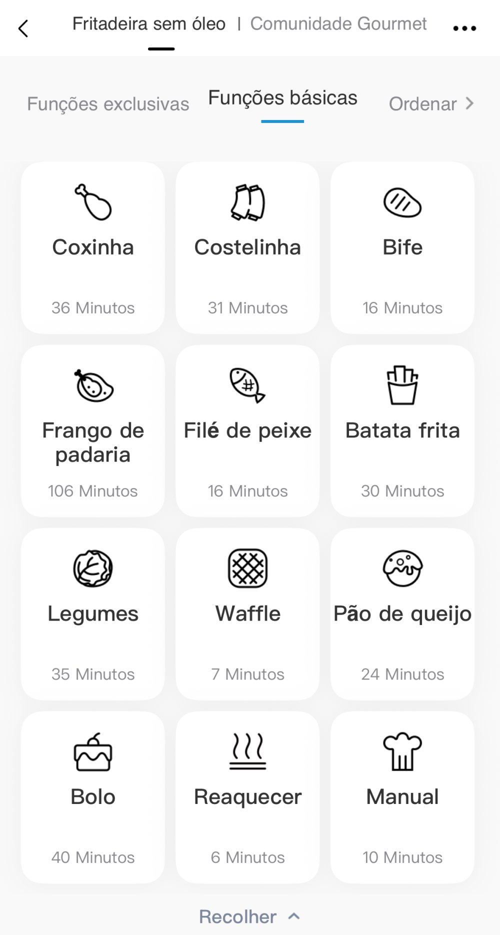Claro que de praxe tudo que se pode fazer no painel físico também é possível fazer no aplicativo. Mas o que chamou a atenção foi as funções diferenciadas, algumas nem vistas em outras air fryers.