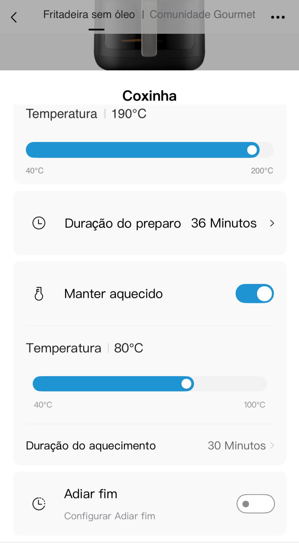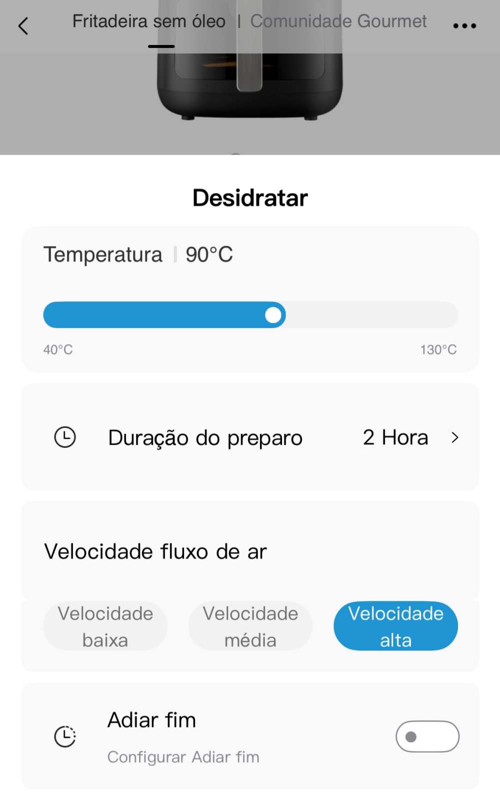 Ali há muitas outras funções além das apresentadas no painel. A conexão da air fryer foi fácil de se estabelecer (2.4 GHz) e o aplicativo está bem feito, oferecendo funcionalidades que realmente vão além do painel básico da air fryer.