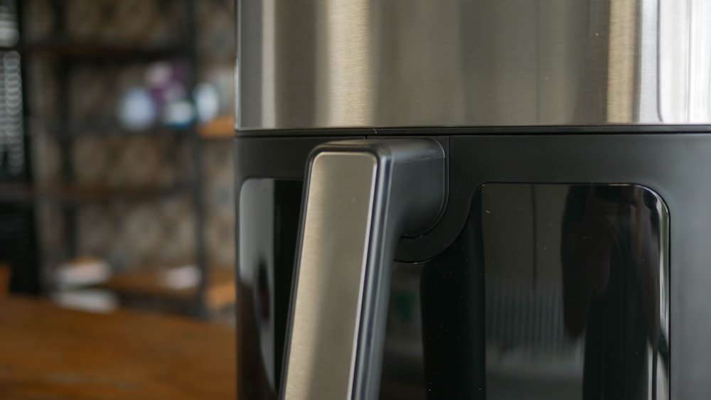 O corpo fosco esconde bem riscos e não deixa muitas marcas de dedo expostas. Por outro lado, o topo em acrílico lustroso não esconde nada e risca com muita facilidade. Além disso, um ou dois dias sem passar um pano já deixa evidente o acúmulo de pó sobre a air fryer.
