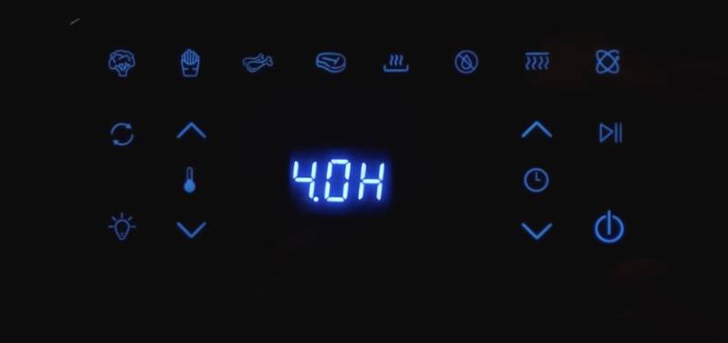 A maioria das funções no painel tem pouca relevância, as opções Assar, Air Fry e Reaquecer alteram apenas tempo e temperatura, funcionando como receitas. Quando selecionando Assar o tempo é de 15 minutos em 180°C, enquanto Air Fry tem a programação de 20 minutos em 200°C, e Reaquecer são 12 minutos a 120°C. Desidratar é a única opção que traz funcionalidades e configurações diferentes.