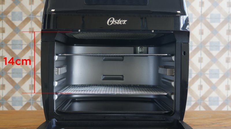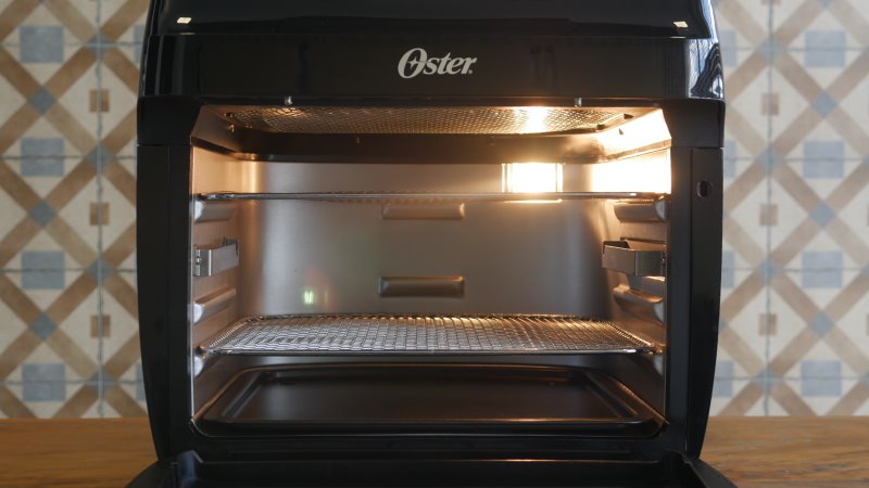A intenção do conjunto é ser uma air fryer, forno e desidratador tudo em uma única unidade. Esse tipo de produto está cada vez mais comum no Brasil e a Oster briga forte neste segmento.
