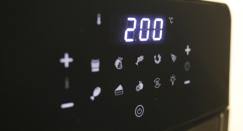 O painel em si agradou, mas faltou um botão para pausar o ciclo. O botão para ligar e desligar tem dois comportamentos para desligar a unidade. Se estiver em funcionamento e for apertado para desligar, deixará a unidade com o ventilador ligado por um tempo antes de desligar o produto por completo. Caso o botão for segurado por 3 segundos, aí a air fryer é desligada por completo sem fazer o ciclo de resfriamento.