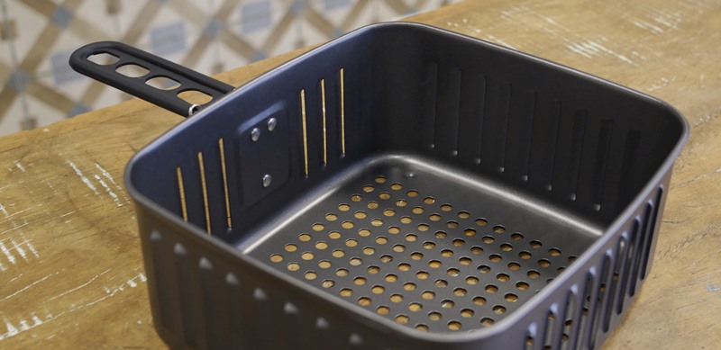 Um dos destaques desse tipo de air fryer é a janela grande na frente para poder ver os alimentos enquanto estão sendo preparados. Dentro da cavidade interna tem uma luz que pode ser ligada através do painel. A parte externa é de acrílico transparente e a interna é de vidro.