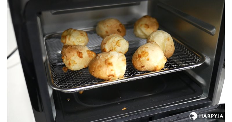 Quando fazendo pães de queijo, o produto também se saiu razoável entregando os pães assados em 15 minutos, um pouco mais dourados nas laterais e no topo, mas nada muito diferente de muitas air fryers testadas.