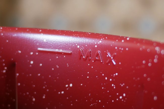 No geral o acabamento é bom, com algumas deformações no plástico indesejadas. A maioria são coisas pequenas, que passará desapercebido pela maioria. As duas chapas de inox na área frontal tem uma boa junção com o corpo plástico. Somente leves falhas. O design do pegador é bom, mas somente neste ponto usaram um outro tom de vermelho, ficou um pouco estranho, pois parece desbotado.