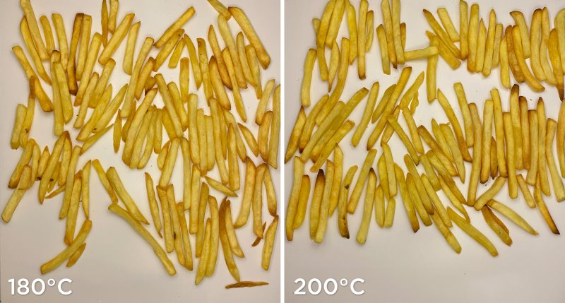 Nos testes de batatas fritas a unidade se saiu bem. Por sinal, a Philips Walita é um dos poucos produtos que para fazer batatas, se tem resultado superior em 180°C e não 200°C. Fazendo em 200°C a batata fica preparada rápida demais, e peca em alguns aspectos. Seguindo a recomendação do menu, em 180°C o resultado é superior e entrega as batatas em torno de 22 minutos. A homogeneidade foi boa, mas não supera a Ri9270 testada no passado.