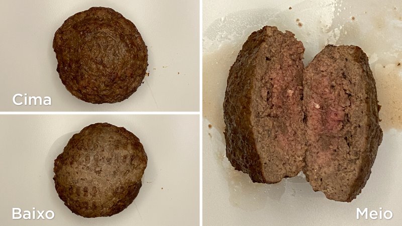 No preparo de carnes após 10 minutos em 200°C o hambúrguer de 200g já estava no ponto para servir. Internamente ficou mais mal passado na parte de baixo, assim como menos dourado na área inferior do hambúrger.