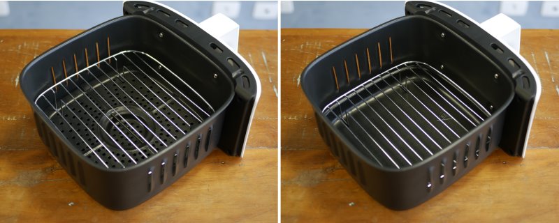 É possível também usar a grade para preparar dois andares de alimentos, e assim ganhar um pouco de área, principalmente se for querer usar a função desidratar. Ainda assim, é um espaço limitado pois a unidade tem um volume interno bem pequeno.