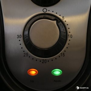 O timer vai de 0 a 30 minutos e é preciso. O seletor de temperatura vai de 80 a 120°C. Quando testando sua flutuação de temperatura, a Britânia Air Fry varia por volta de 30°C em torno da temperatura desejada. Na média sua temperatura fica 10 graus abaixo da temperatura selecionada. Na maioria das Air fryers esse erro é similar ao da Britânia.