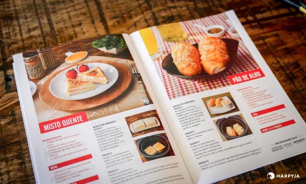 A Mondial envia junto com esta fritadeira sem óleo um livrinho com 34 receitas para realizar na air fryer. O livrinho é bonitinho, colorido com detalhes de como preparar, ingredientes e fotos dos pratos.