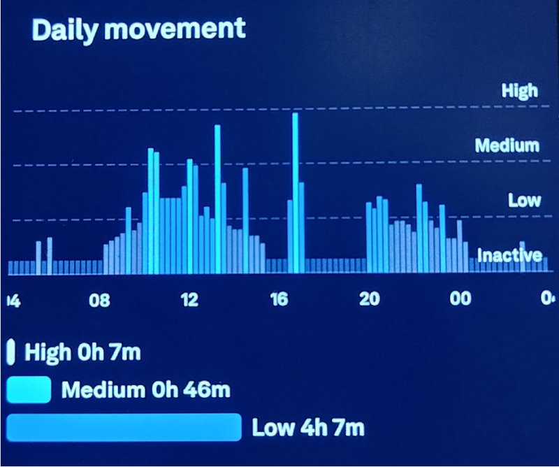 Um exemplo da Oura é a demonstração de movimentos durante o dia, algo que o Kumi não documenta. Apesar de que pode ser possível realizar através de uma atualização futura no software, pois ele já está computa o movimento.