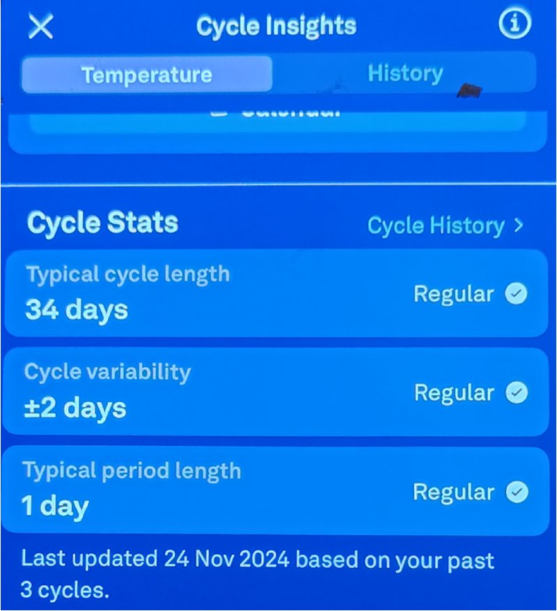 Para mulheres o Oura traz dados sobre o periodo menstrual, medindo o intervalo entre ciclos, dias de duração e variação entre os meses. O Kumi não traz nada nesse sentido.