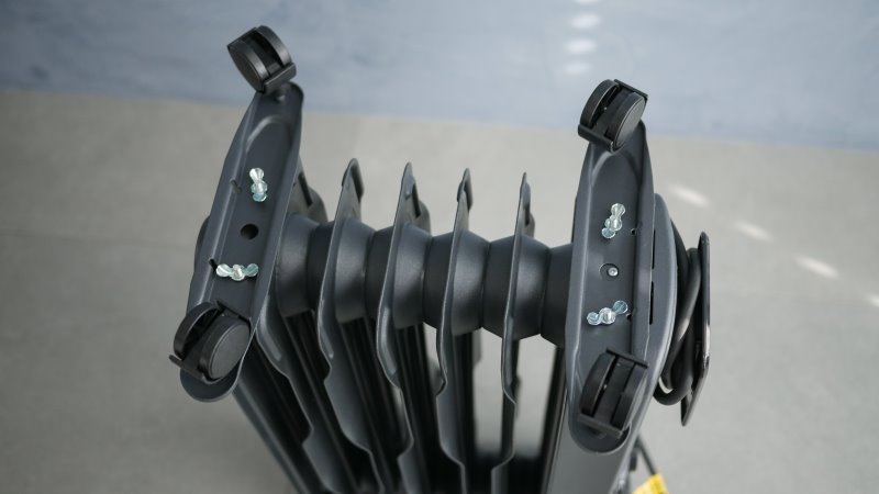 Design e Construção do Aquecedor a Óleo EOSDe forma geral, aquecedores a óleo não tendem a investir muito na estética, e esse modelo segue a regra. Grande parte de seu corpo é metálico, ocupado pela região que abriga o óleo e resistências. Ainda assim, explorando a estética, a EOS dobrou as aletas numa forma de ondulação. Se diferencia da maioria dos aquecedores a óleo (que são completamente retos) e deixa o aquecedor levemente mais interessante.