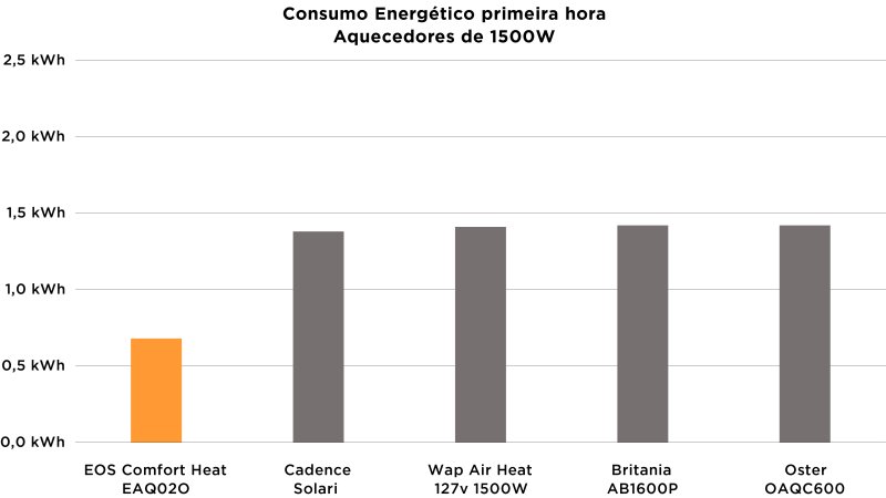 É importante perceber, porém, que ele gastou menos energia porque entregou menos calor para o ambiente. Se o objetivo é atingir uma certa temperatura, o gasto de energia será próximo entre ele e aquecedores a ar, pois a quantidade de calor que precisa ser entregue é a mesma.