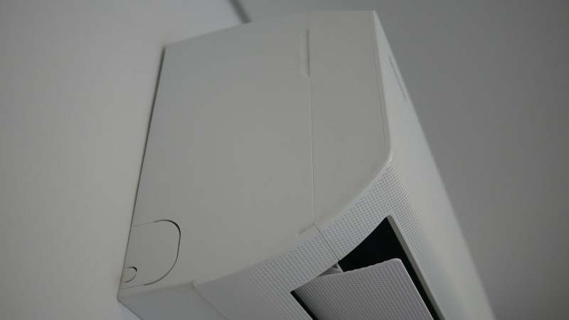 O corpo é todo branco, tirando o visor que é escuro. O design agrada: no geral são linhas simples e retas, sem muito destaque, a leve exceção é a área frontal. Coberta por uma peça toda furada, ao invés de só a aleta principal como o Air Still, o preenchimento de parte dos furos parece uma toalha de renda simples, formando um leve padrão.