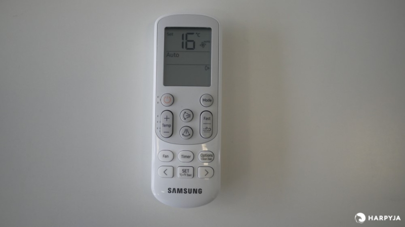 Além das funções descritas anteriormente, neste ar condicionado da Samsung há a função de Limpeza Automática para o caso da unidade interna exalar algum tipo de odor. Essa função é ativada pelo controle ao segurar o botão “Options” por 3 segundos. Também é possível cancelá-la, se necessário. Nesses momentos, parece que o ventilador do produto gira pro lado contrário para liberar alguma sujeira que capturou, mas é difícil de realmente conseguir ver qual o processo.