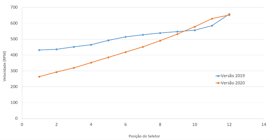 A velocidade de partida dos batedores era perto de 430 rotações por minuto (RPM) e agora na versão 2020 está em torno de 265 RPM. Comparando de forma simples a velocidade inicial do modelo 2019 é equivalente a sexta velocidade da versão 2020!