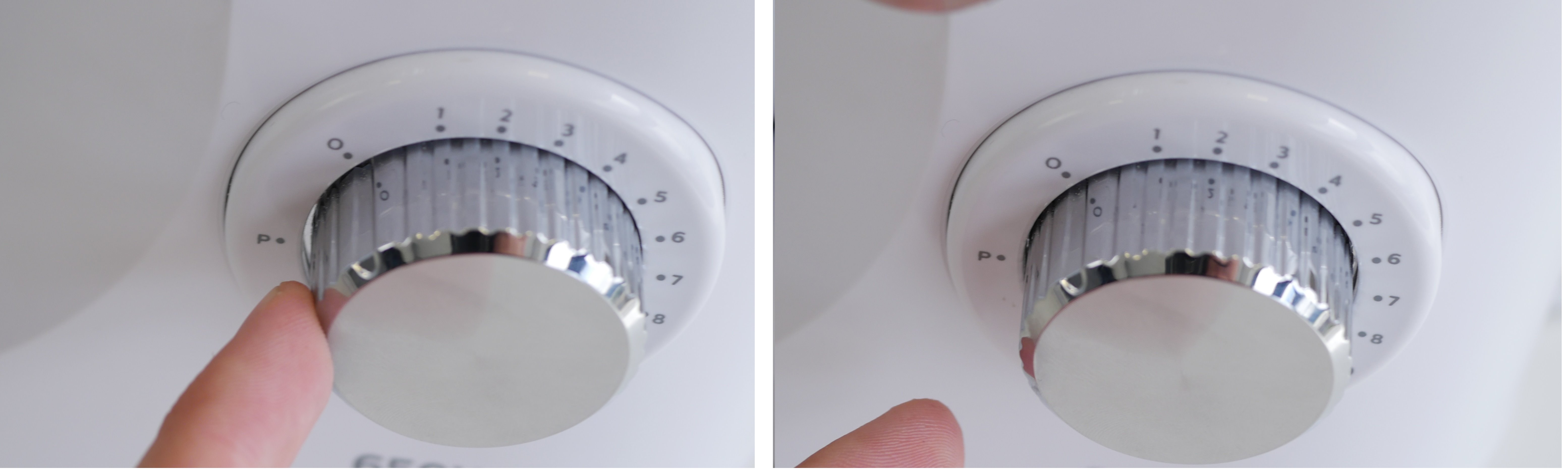 Depois de baixados os batedores, se o seletor estiver em alguma velocidade a batedeira irá acelerar até a velocidade selecionada. A vantagem aqui é que caso tenha esquecido em uma velocidade alta e na verdade queria deixá-la desligada, a aceleração é lenta então dá tempo de desligar sem ela ganhar muita velocidade.