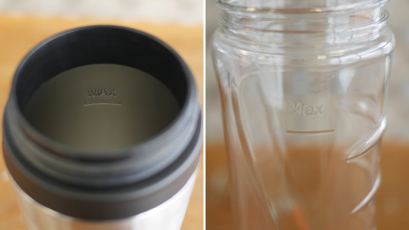 Um ponto fraco de ambas as jarras é que somente possuem marcações de máximo. Se pretende se guiar pela squeeze para dosar os ingredientes de uma vitamina, por exemplo, será mais complicado. A jarra de inox indica 430 ml na sua marcação, enquanto que a de tritan aponta 500 mililitros.