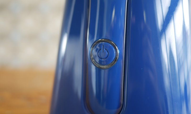 A opção abre mão de um pouco de praticidade, mas retira o problema passado de retirar a jarra devagar e raspar os encaixes, podendo danificar a região com o tempo. Ao conectar o produto na tomada, uma lâmpada escondida acende a moldura em torno do botão