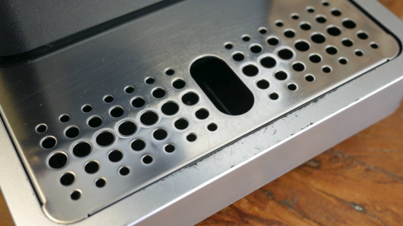 Na lateral há uma porta de acesso fácil para remover o cachimbo. É possível fazer uma limpeza das áreas que tem contato com o café, mas há várias outras áreas inacessíveis, como o mecanismo para empurrar o pó usado. Depois de limpo o cachimbo é fácil de ser recolocado de volta, basta encaixá-lo de volta. A tampa é pratica de fechar, através de imãs.