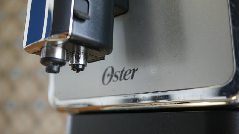 O sistema de limpeza do duto de leite é feito acionando a função específica no painel. Durante essa ação a máquina irá puxar água do reservatório de leite então é preciso colocar água limpa ali. O processo também gera vapor para sanitizar a área. Mesmo assim, é possível fazer uma limpeza mais profunda no bico de leite. Tirando a tampa do bico frontal, que é presa somente com imã, é possível remover o bico de leite, que também é fixo somente por imãs. É muito simples remover e recolocar. Vale a pena fazer uma limpeza completa com certa frequência pela natureza do leite. Caso acabe não limpando e entupa o duto, é possível usar o arame que a Oster envia junto com o produto para desentupir.