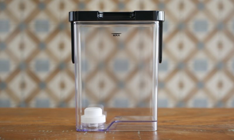 O recipiente de leite pode ser guardado no refrigerador e ser utilizado somente na hora do preparo do café. Vale lembrar que a tampa não trava no recipiente, então nada de pegar pela tampa para o transporte.