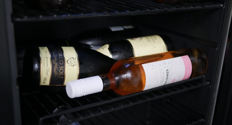 Não cabe garrafa de 750ml de vinho na profundidade.