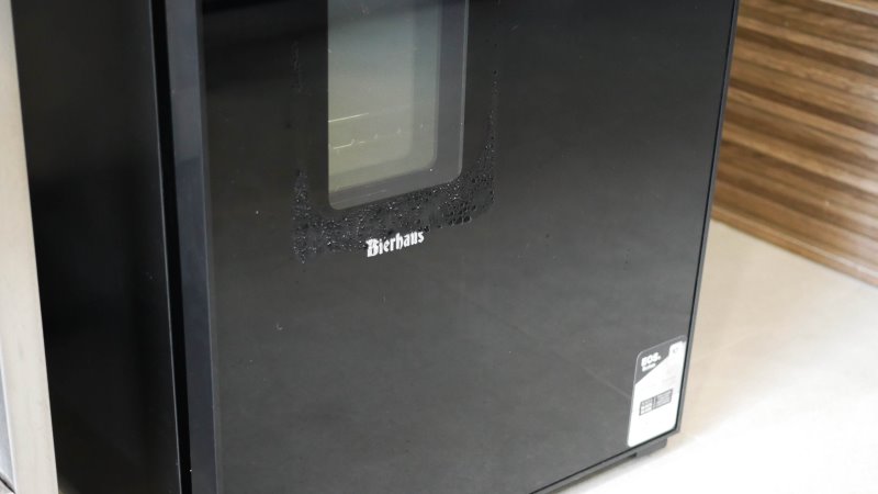 Na área interna da porta há pontos de acúmulo ao redor da borracha, mas nada diferente de um refrigerador comum. Também há espaço para acúmulo entre o vidro e o termoplástico da porta, mas são frestas pequenas, uma escovinha resolve.