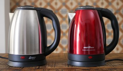 A fuga de tensão desta chaleira chega a 57 Volts quando o produto não está aterrado. É importante ligar o produto em uma tomada com aterramento para prevenir choques quando manipulando a unidade descalço e com as mão molhadas. O modelo testado da Britânia tem a mesma fuga de tensão, porém como quase toda a chaleira é pintada somente o bico demonstra essa fuga de tensão. Chaleiras como a Hamilton Beach não tem essa fuga de tensão presente, é mais seguro.