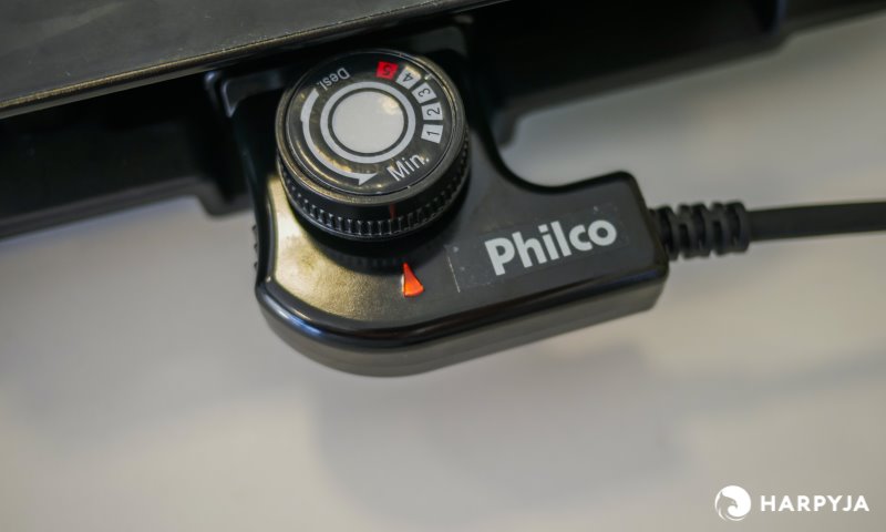 Na posição de potência mínima a temperatura da grelha da Philco fica em torno de 137 graus, com uma variação de + ou - 15 graus. Ou seja, há momentos em que a temperatura fica 120 graus e há momentos em que a temperatura fica 150 graus.