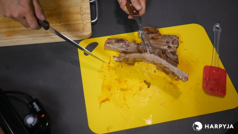 O filé foi o primeiro a ficar pronto e foi entregue em uma ótima consistência. As marcas de tostado da grelha ficaram presentes, dando também um aspecto de “churrasco” para a carne. Em 15 minutos a peça estava suculenta por dentro e tostada por fora.