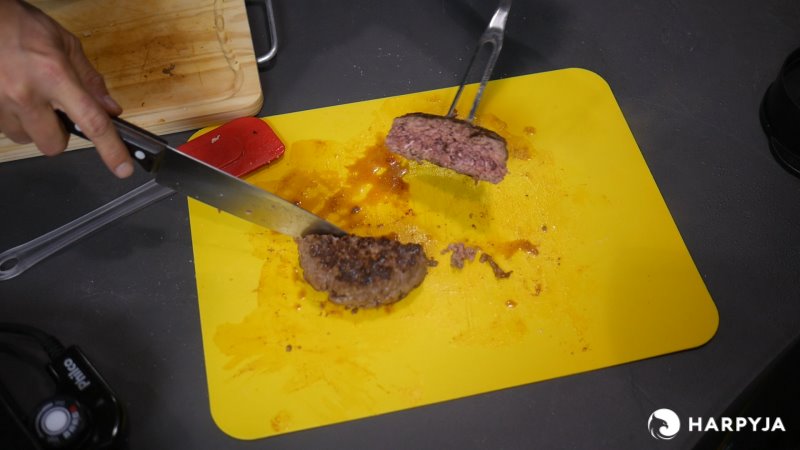 Quando fazendo um filé, um hamburger e um peito de frango, usamos para todos a temperatura máxima e colocamos tudo junto para ver se a churrasqueira perdia muita temperatura no processo ou conseguia manter o calor.