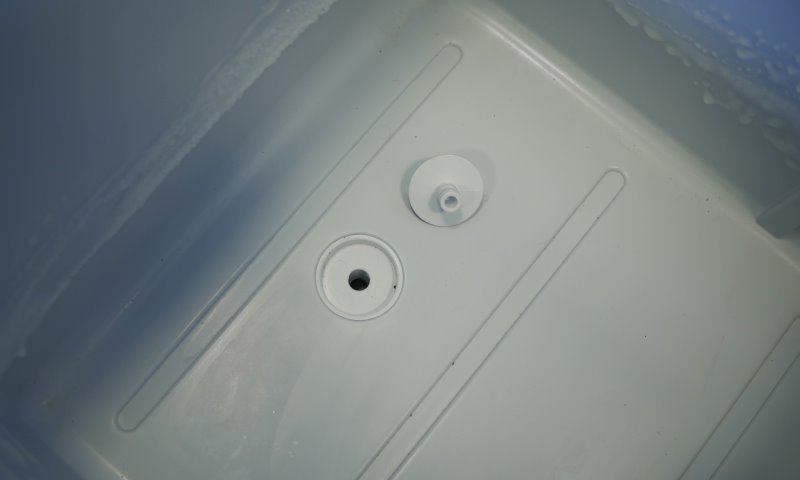 A área interna desta geladeira é simples de lavar, muito similar a um cooler. Toda a cavidade plástica possui um dreno no fundo. Basta remover a tampa e esvaziar sem precisar tombá-la. Recomendo não encher até a boca, pois há uma emenda entre dois plásticos perto da tampa e ali pode ser que haja infiltração para áreas indesejadas.