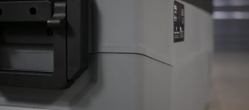 O acabamento no geral é bom, mas poderia ser melhor pelo padrão da unidade. Há rebarbas na tampa, rechupes nas paredes do corpo e leves desencontros das chapas cinza. Como há componentes eletrônicos e mecânicos ao redor das paredes do cooler, as paredes laterais são uma união de três peças.