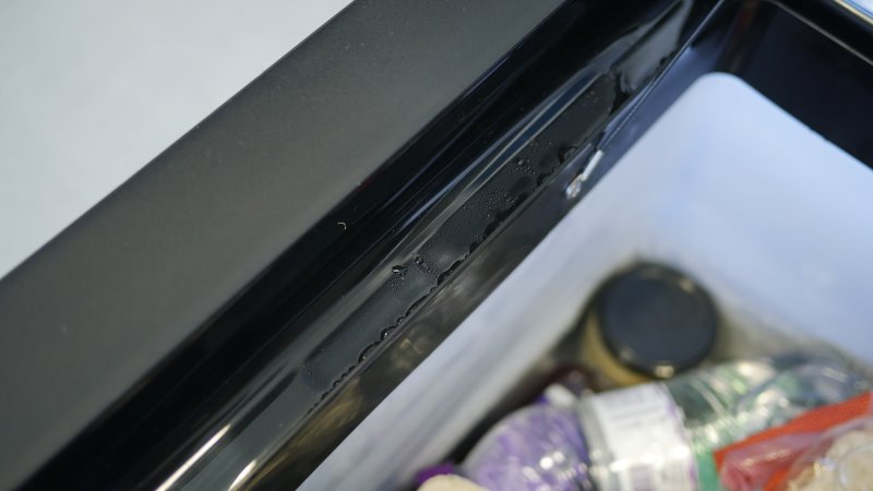 Chegando no destino, desliguei o cabo de energia, carreguei para dentro de casa e mantive ele ligado durante os 5 dias com uma quantidade grande de alimentos dentro. Durante o uso a unidade manteve o resfriamento estável, mesmo com a abertura frequente da porta. Houve alguns pontos de condesação de água próximos da porta e leves sinais de congelamento próximos da parte inferior.