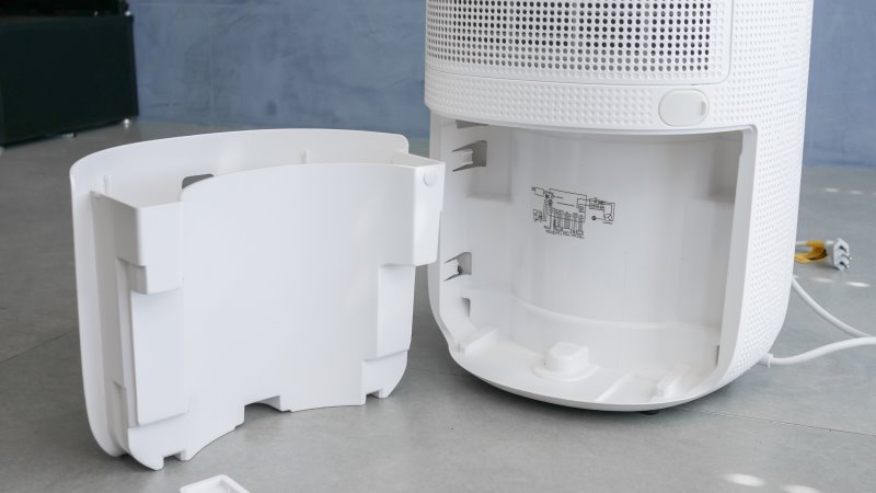 O desumidificador possui 54,6 centímetros de altura, e quase 28 centímetros de largura e profundidade. Pesando quase 12 quilogramas estando vazio, é um produto de tamanho e peso considerável, mas ainda pode ser carregado para outros lugares.