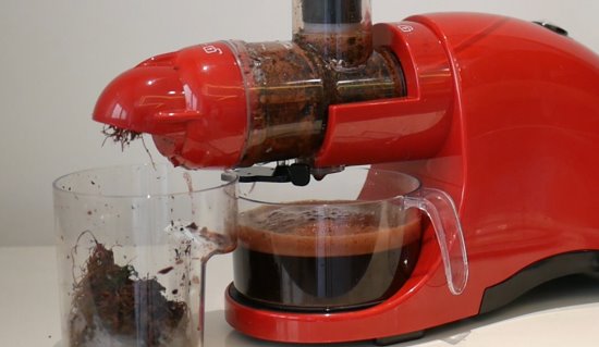 Quando batendo folhas o resultado é ainda mais surpreendente. Espremendo couve o suco fica homogêneo com um tom verde muito atraente. Espremendo 500 gramas de folhas de beterraba, foi obtido 386g de suco, 77% da folha saiu líquida!