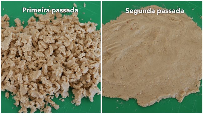 Para usar o moedor decidimos processar amendoim torrado e fazer pasta. O espremedor faz o trabalho sem muita dificuldade, apesar de demandar toda a potência do motor para realizar o trabalho. Na primeira passada o amendoim ainda saiu um pouco granulado, não no estado desejado. Quando levado para a segunda passagem na máquina aí o resultado foi pasta de amendoim. Um pouco grossa, mas para muitos já estaria no ponto desejado.