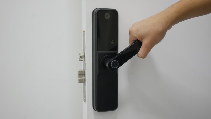 A fechadura inteligente YRHAND fica trancada somente para quem está entrando na casa. Quem está saindo, sempre que virar a maçaneta irá abrir a porta. Isso é um ponto importante pois, caso tenha crianças em casa que tenham força o bastante para girar o trinco, será impossível de evitá-las de abrir a porta sem supervisão.