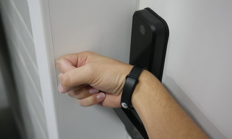 As pulseiras infelizmente são mais para decoração do que para uso. Nenhuma das que vieram com o produto foram fáceis de ler. Caso um usuário tenha uma no braço será necessário removê-la e basicamente esfregá-la na porta. Assim mesmo a chance de funcionar é quase zero.