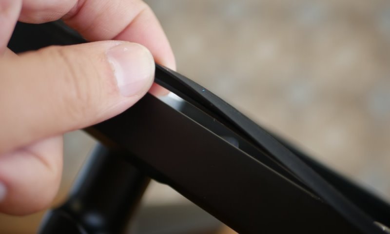 Ao redor do corpo metálico preto há uma borracha para vedar toda a área interna contra contaminação por água ou maresia. Visualmente essa junção entre a borracha e o metal são ótimos. Há também uma borracha que esconde um dos parafusos de fixação que acabaria sendo um ponto de contaminação sem essa peça de vedação.